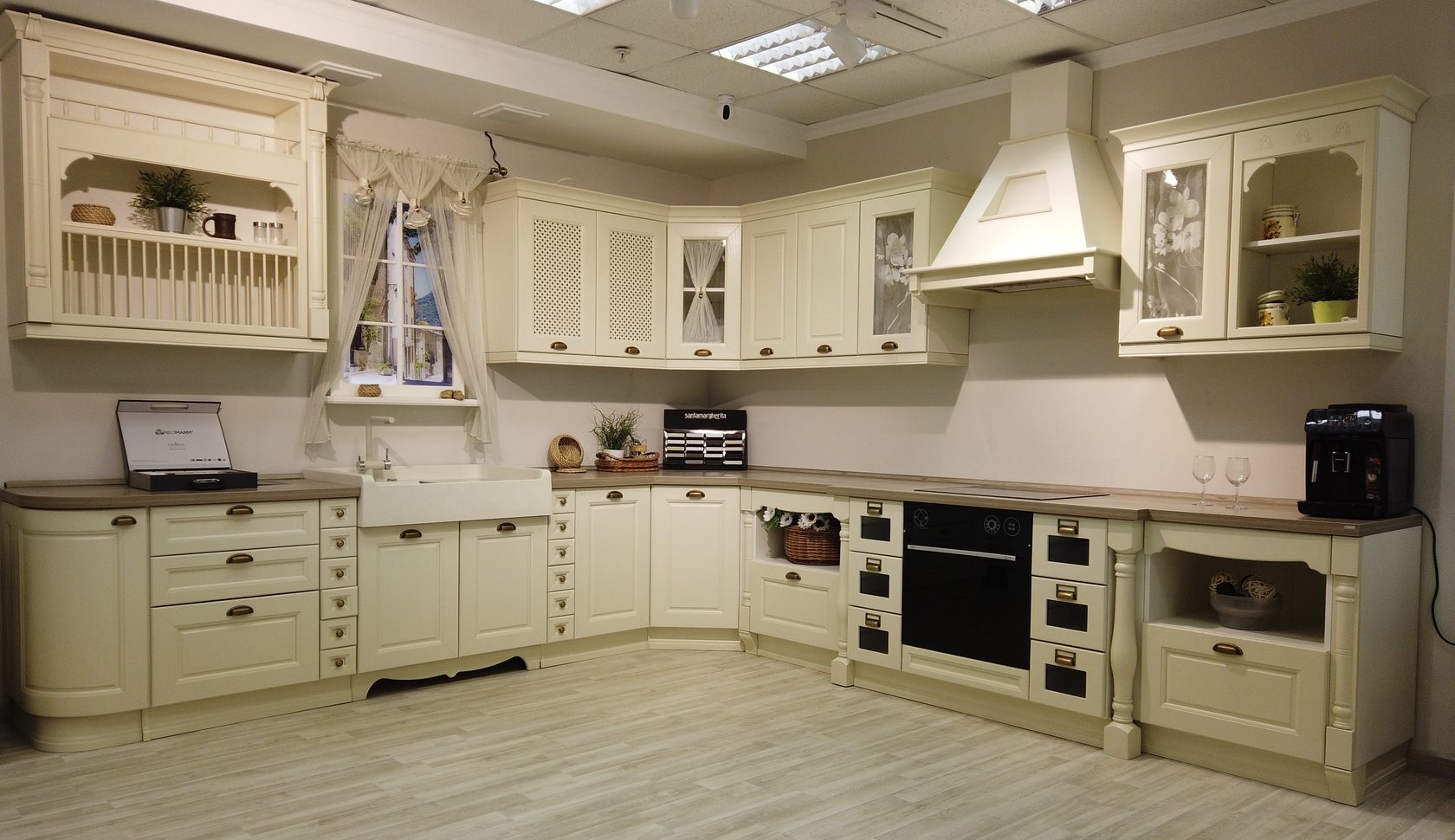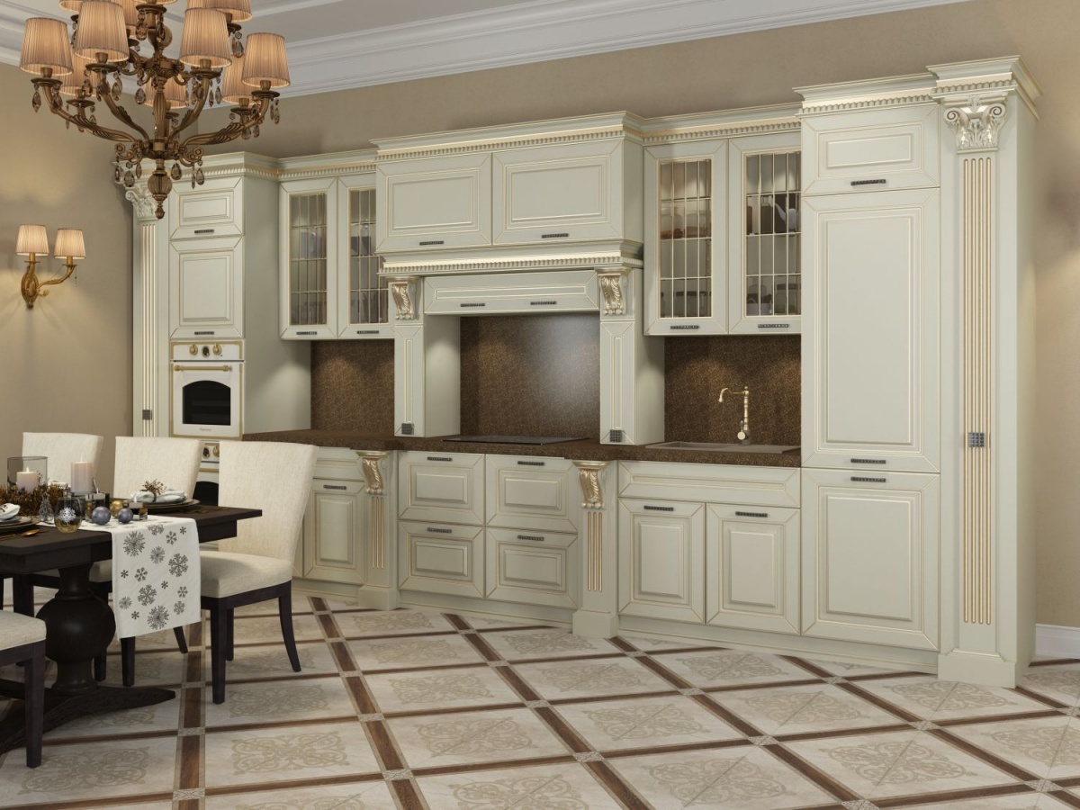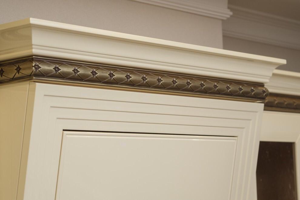 Версаль – утонченная изысканная модель. Покрытие фасадов можно сделать в разном исполнении, в один цвет, в два цвета, наложить золотую или серебряную поталь. Благодаря такой возможности кухню можно поставить как в квартиру, так и в загородный дом в стиле европейской дворцовой классики. Огромный выбор декоративных элементов поможет сделать эксклюзивную модель для каждого покупателя.