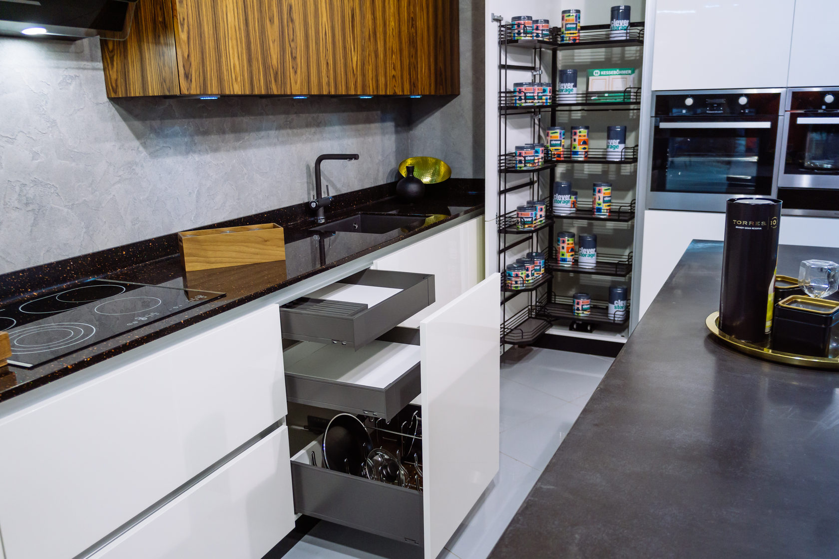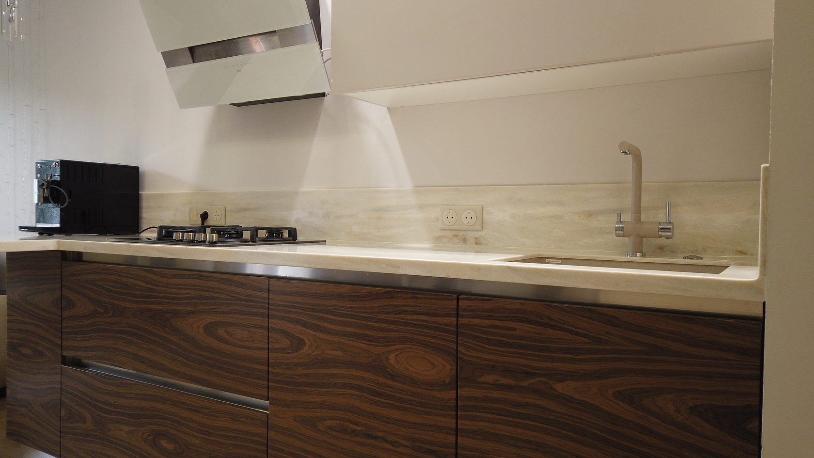 Название модели говорит само за себя – «Саванна» собрала в себе черты экзотической, солнечной Африки. Высокий глянец фасадов добавляет игры света в помещении, а древесный рисунок шпонированных фасадов придают свою экзотику.