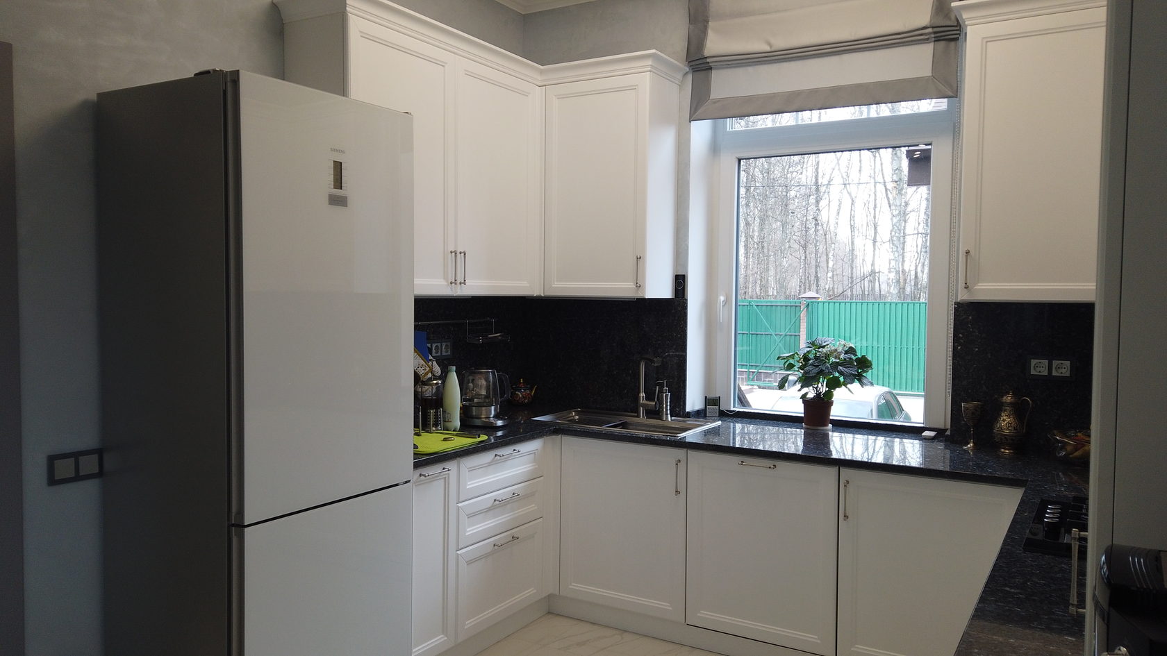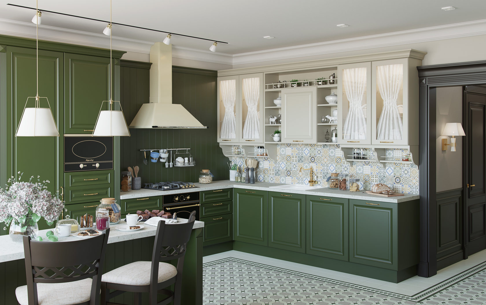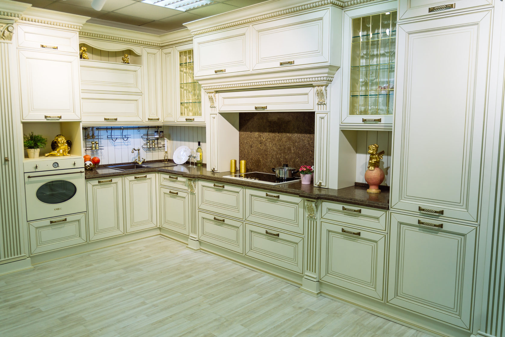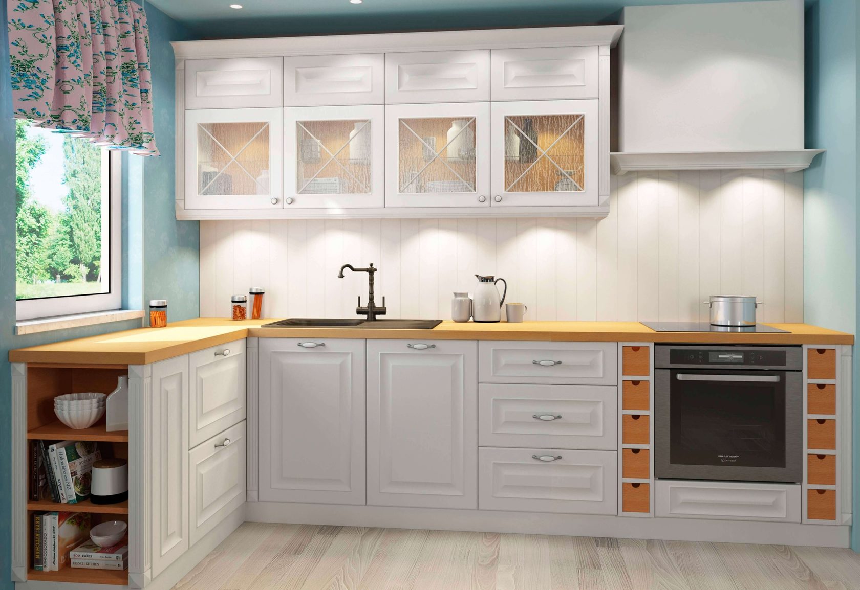 Материал фасадов: МДФ, покрытый эмалью + ручная отделка покрытия фасадов протиром или патиной.