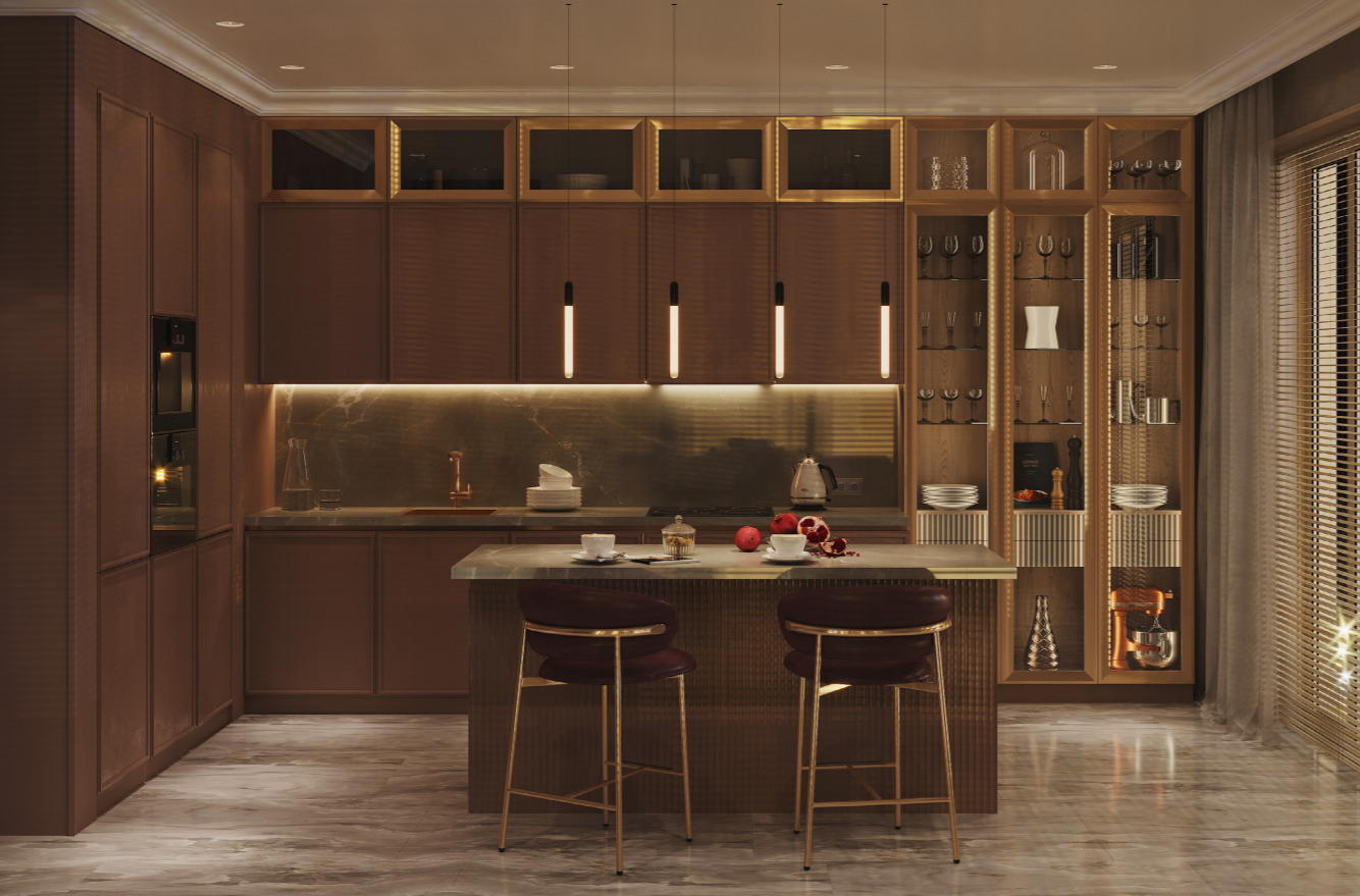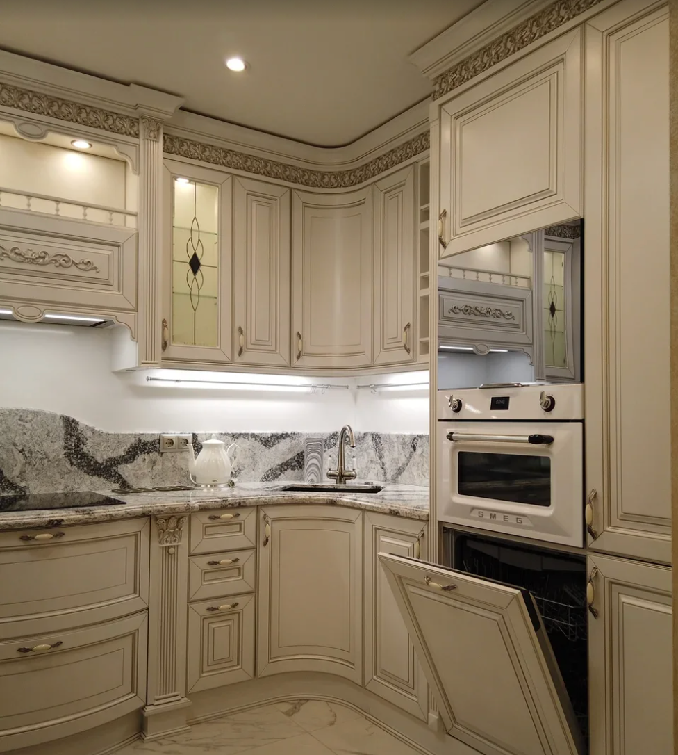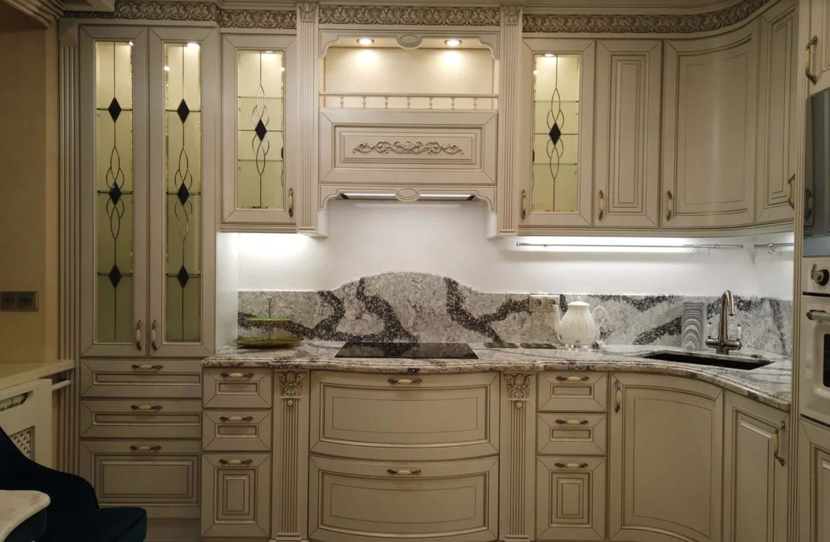 прекрасного. Очарование роскоши нашло свое воплощение в каждом элементе этого кухонного гарнитура.