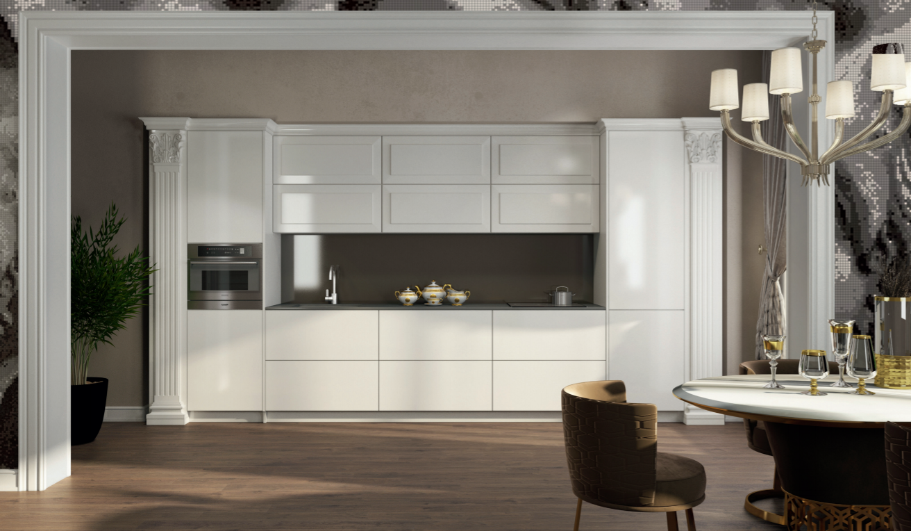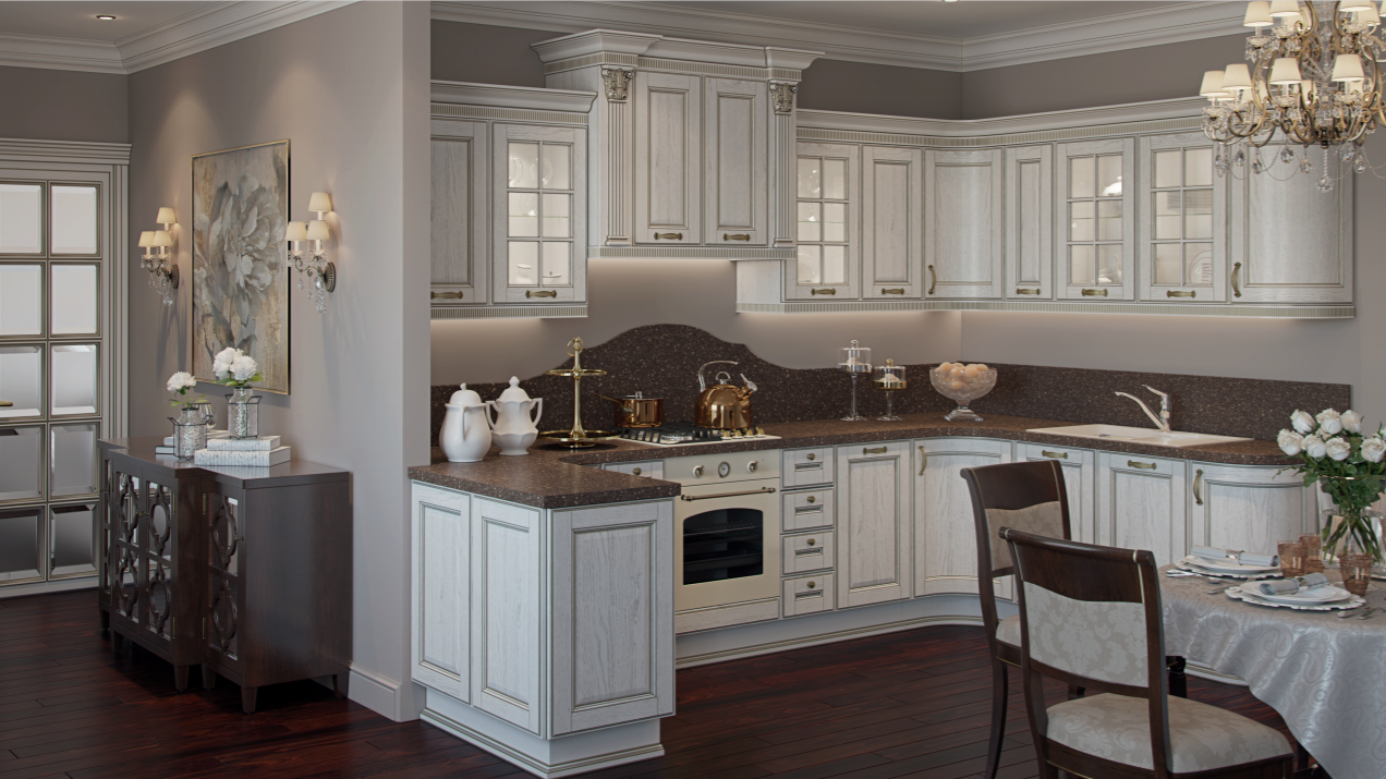 Модель «Глория» выполнена в стиле Современная классика. Простота образа таит в себе совершенное исполнение и изящество декоративных элементов.Фасады Глория выполнены с уникальной технологией«протир», что безусловно, выделяет данную модель своей индивидуальностью.