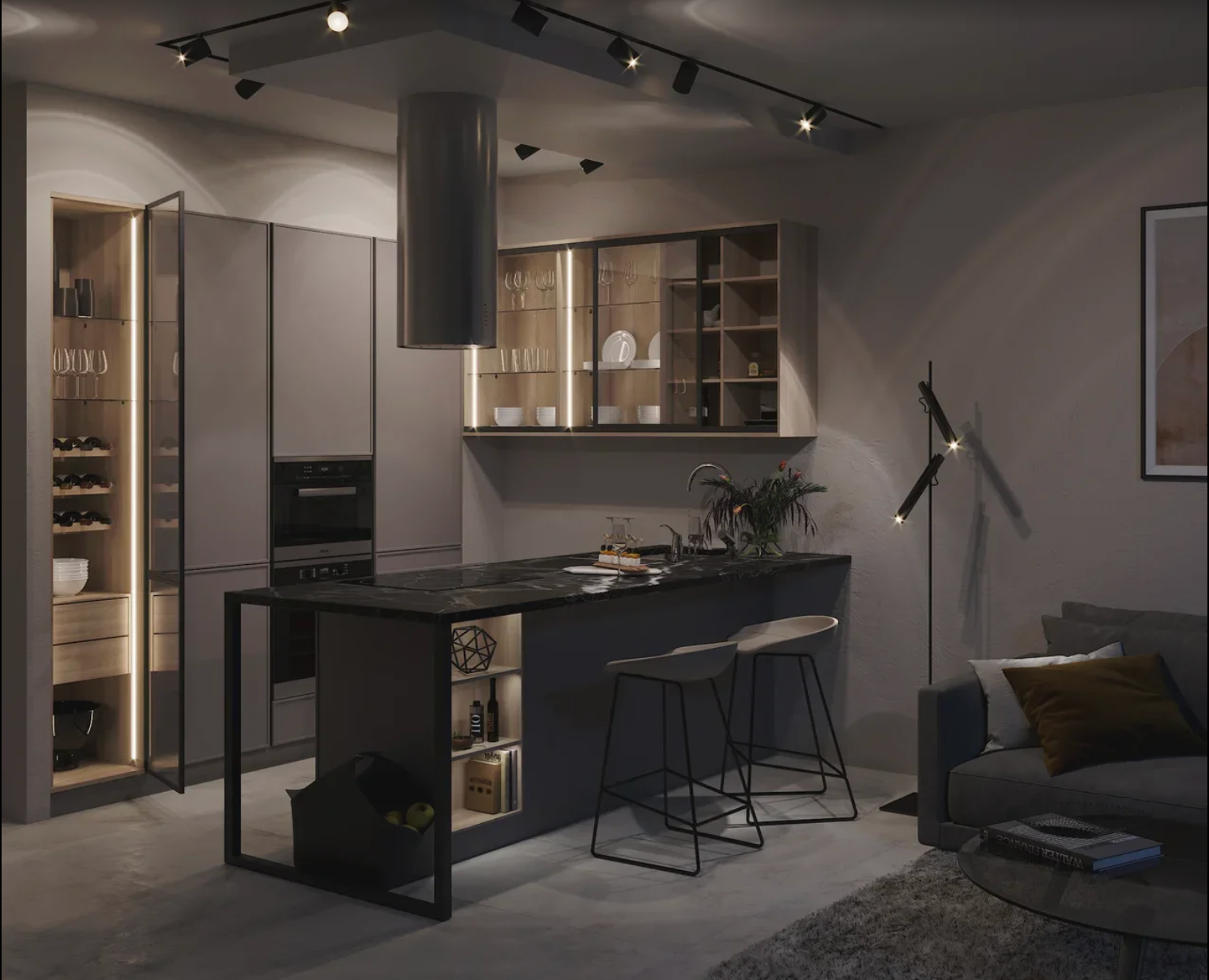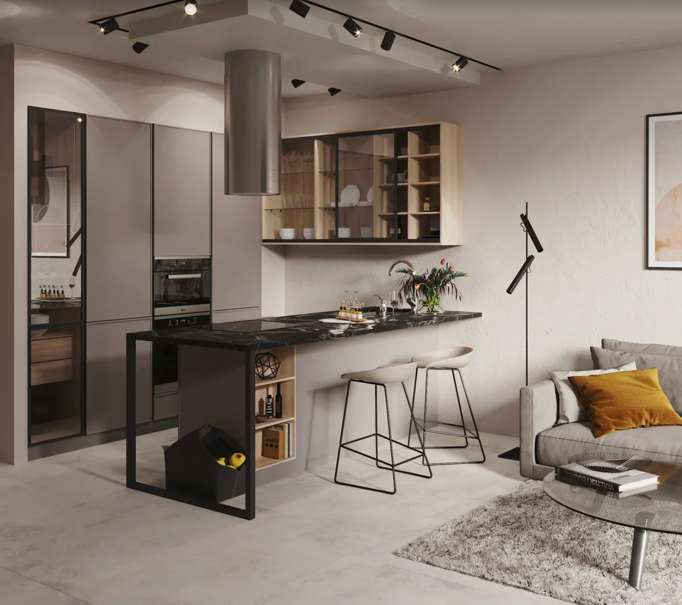 Урбанистический стиль для кухни нетрадиционный, но интуитивно понятный.
