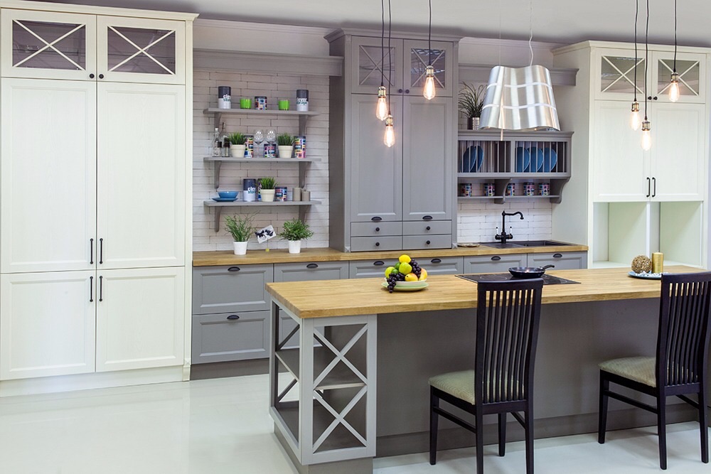 Мелани может позволить себе сочетание двух цветов кухни – яркие и приглушенные тона, либо контраст светлого и темного. Такой прием создаст в помещении кухни ощущение праздничности, а интерьер при этом останется дружественным и уютным.
